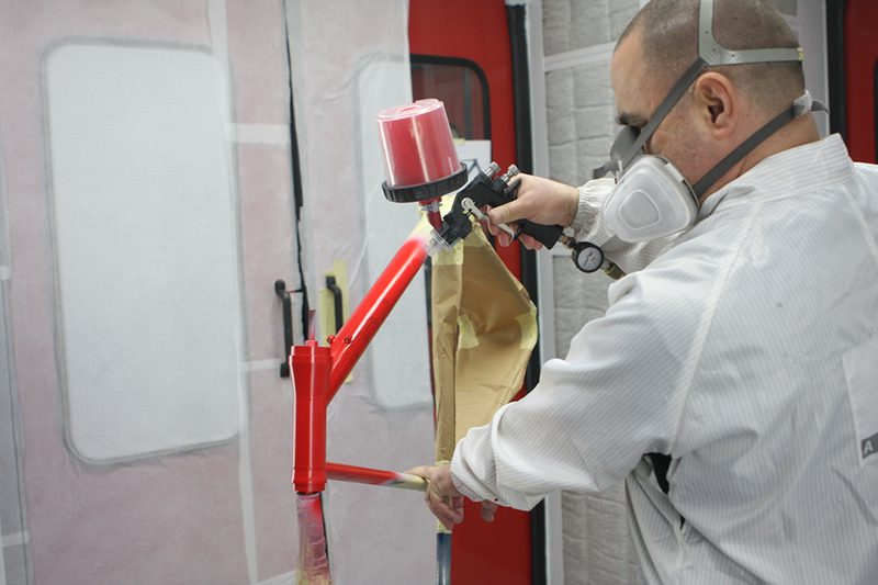 As with the rest of our fabrication method, laying on the finish to one of our titanium bikes is a multi-phased process that requires state-of-the-art facilities and skillful hands.